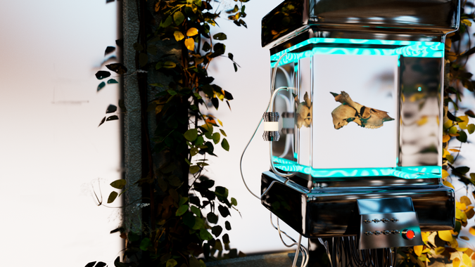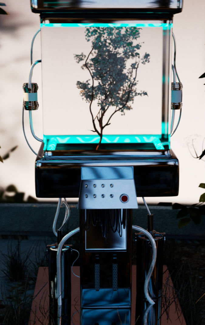 Named after the Palacio de Cristal in Madrid, The Glass Palace challenged me to create a fully actualized and renderable environment. Drawing inspiration from abandoned greenhouses, I focused on adding elements of decay such as: rusting copper for the exterior of the building, dying weeds and decomposing plants hanging from the trellises. I wanted to juxtapose the space with futuristic experiments to give an element of dystopia.